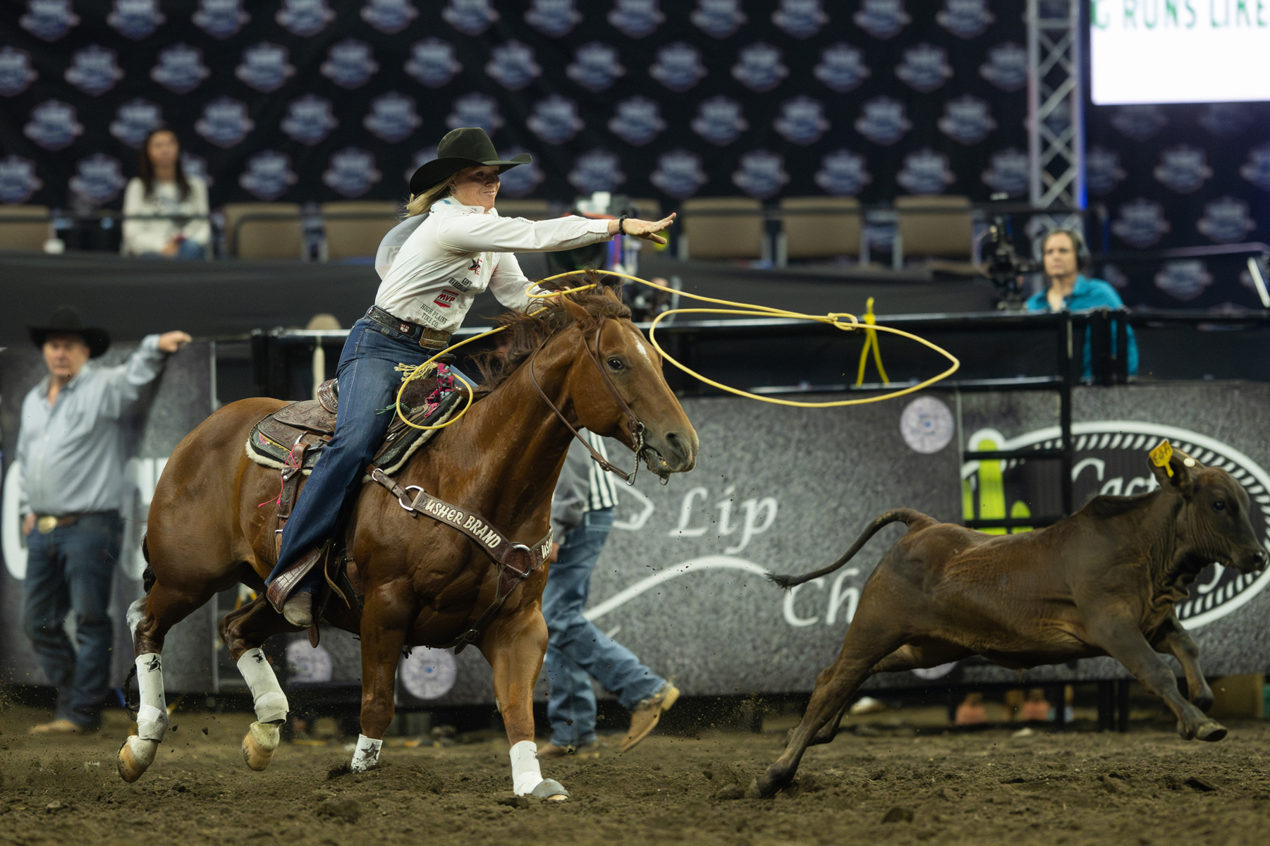 Breakaway roping: Finals: 1. Bailey Bates, 2.1 seconds, $32,000; 2. Josie Conner, 2.5, $24,000; 3. Martha Angelone, 12.1, $16,000; 4. Rylee George, NT, $8,000. Semifinals: 1.Rylee George, Oakdale, CA, 2.2; 2. (tie) Bailey Bates, Tohatchi, NM, and Josie Conner, Iowa, LA, 2.6; 4. Martha Angelone, Stephenville, TX, 12.4; 5. (tie) Maddy Deerman, Hope, NM, Aspen Miller, Santa Fe, TX, Cheyanne McCartney, Kingston, OK, and Taylor Munsell, Alva, OK, NT, $4,000 each