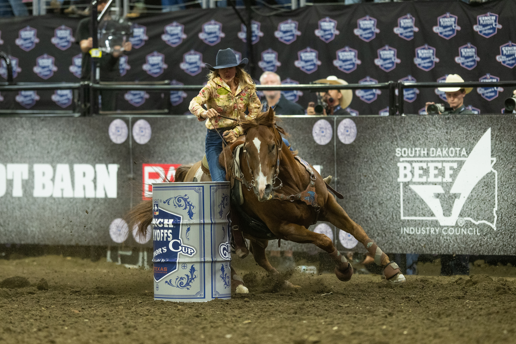 Barrel racing: Finals: 1. Halyn Lide, 14.38 seconds, $32,000; 2. Tricia Aldridge, 14.45, $24,000; 3. Megan McLeod-Sprague, 14.46, $16,000; 4. Carlee Otero, 19.63, $8,000. Semifinals: 1.Tricia Aldridge, Sanger, TX, 14.38; 2. Carlee Otero, Lipan, TX, 14.41; 3. Megan McLeod-Sprague, Marsing, ID, 14.54; 4. Halyn Lide, China Spring, TX, 14.64; 5. Wenda Johnson, Pawhuska, OK, 14.74, $4,000; 6. Emily Beisel, Weatherford, OK, 14.76, $4,000; 7. Tayla Moeykens, Three Forks, MT, 14.77, $4,0008. Lisa Lockhart, Oelrichs, SD, 19.17, $4,000