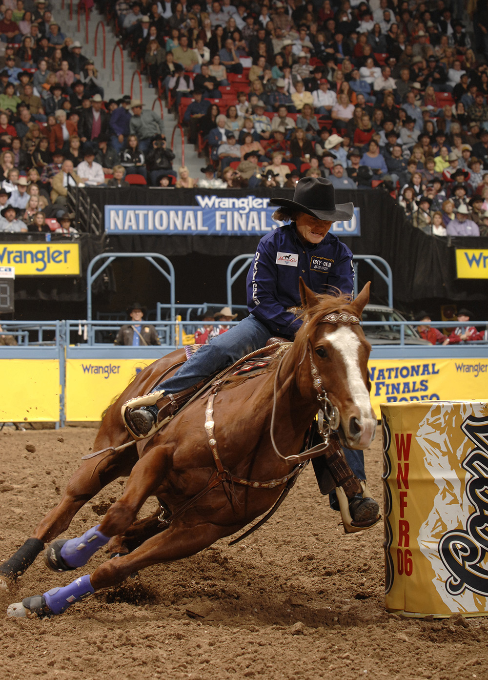 Burger joined the Women’s Professional Rodeo Association in 1985, when she moved to Oklahoma with her husband, Kerry, but just dabbled in the ProRodeo ranks until 2006. That year a horse named Rare Fred carried her to her first WPRA world title. She not only etched her name in the record books for the 2006 world title, but she also became the oldest world champion in the WPRA at the age of 58.