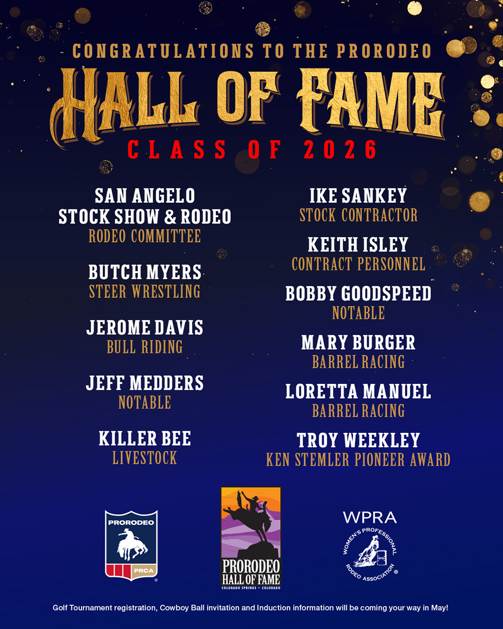 COLORADO SPRINGS, Colorado – It seems only fitting as we close out Women’s History Month for 2026 that we announce two WPRA members who will be enshrined into the ProRodeo Hall of Fame this July with eight representatives from the Professional Rodeo Cowboys Association.
