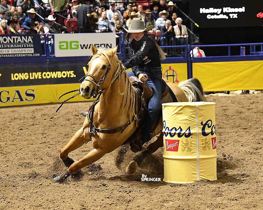 LAS VEGAS, NEVADA – A year ago four-time world champion Hailey Kinsel left Las Vegas as the reserve champion but her thoughts were all on her horse Sister, who sustained an injury in the ninth round keeping her from running in the final round. Fast forward a year and not only is Sister back to championship form winning her second AQHA Horse of the Year award but they added yet another round win to their resume on night No. 2 of the 2025 Wrangler National Finals Rodeo presented by Teton Ridge.