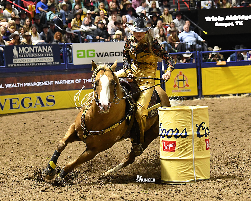 All the top 15 are not only competing for cash in the arena but a chance to be named the 2025 Jerry Ann Taylor Best Dressed Award winner presented by The Cowgirl Museum and Hall of Fame. Another first timer to the NFR, Tricia Aldridge has been making a statement each night with her wardrobe as she runs down the alleyway at the Thomas and Mack. Not only is she dressed to impress but so is her horse handler that is known simply as Tank. Fans can vote nightly for the best dressed at www.wpra.com. The winner will be announced prior to the start of the 10th round. The winner is determined by a combination of fan and committee votes.