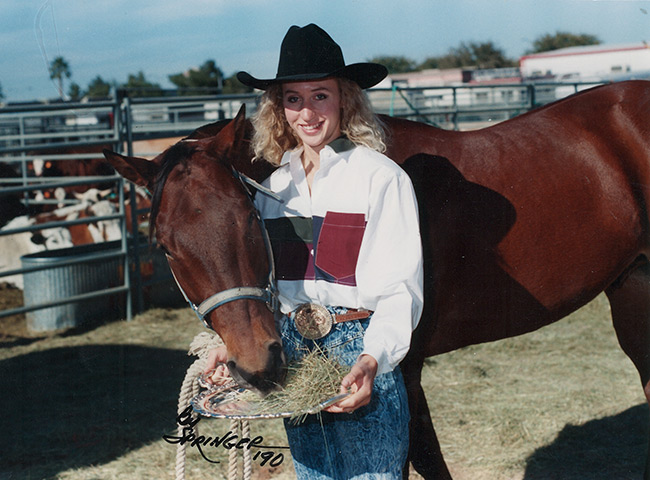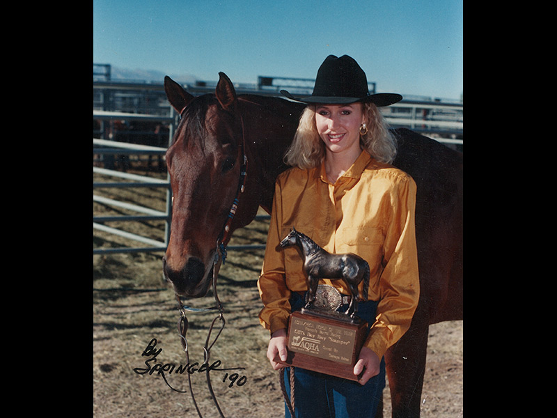 “I started competing in local 4-H shows doing everything – barrel racing, pole bending, flag race, all that kind of stuff and got good at it. My mom (Gloria) and dad (Charlie) recognized that was something I liked. I would bug my dad asking if I could make money working at the feedlot or what I needed to do. I started going to amateur rodeos and realized you could go win money running barrels, and I thought, ‘Wow, that is so cool.’ Then I heard about Sherry Elms. She was winning the world at the time and had won like $18,000 at the time, and I just thought, ‘Oh, my gosh; I could buy a truck’ – obviously not understanding the expense of competing with entry fees, travel, feed, etc. From that time on it was something I really wanted to go after. My dad told me I could rodeo if I could pay my own way.”