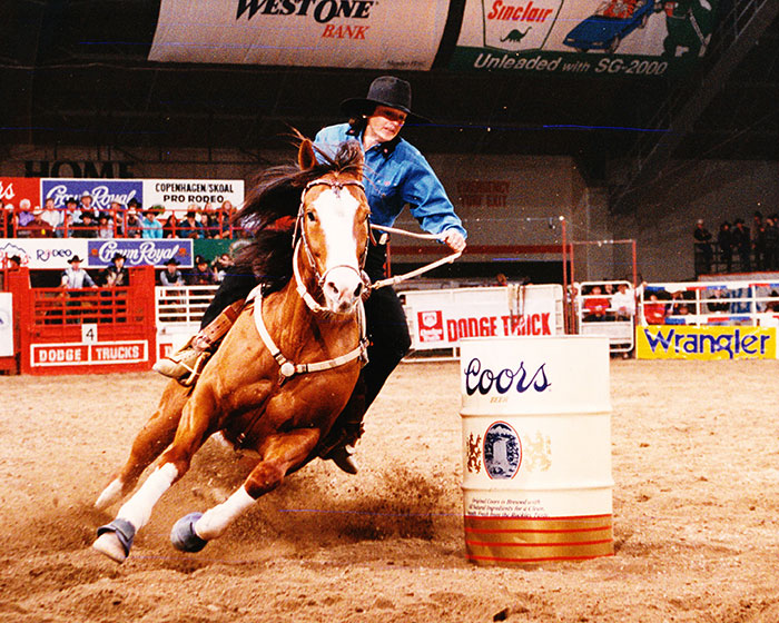 Peterson ventured into the aged events for the first time in her career, earning nearly $150,000 in two years of futurities and derbies in 1991 and 1992. Bozo won the Barrel Futurities of America World Championship Derby and Sweepstakes in December of 1992. She’d also dipped her toe into the rodeos, buying her WPRA card in 1991 and earning the first of 11 Mountain States Circuit titles.